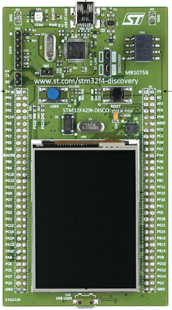 The STM32F429I-DISC1 Discovery kit features an ARM Cortex-M4 based STM32F429ZI MCU with a wide range of connectivity support and configurations. Here are some highlights of the STM32F429I-DISC1 board: