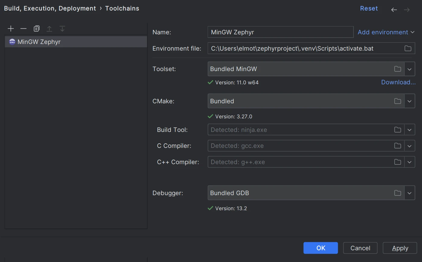 The instructions have been tested on Windows. In terms of the CLion workflow, the steps would be the same for macOS and Linux, but make sure to select the correct environment file and to adjust the paths.