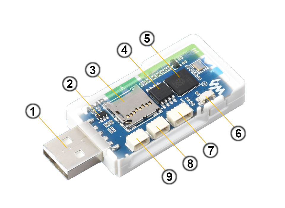 The RP2040-One [14] is a mini sized RP2040 development board. The on-board PCB USB-A connector makes it plug-and-play instantly. The castellated module allows soldering direct to carrier boards.