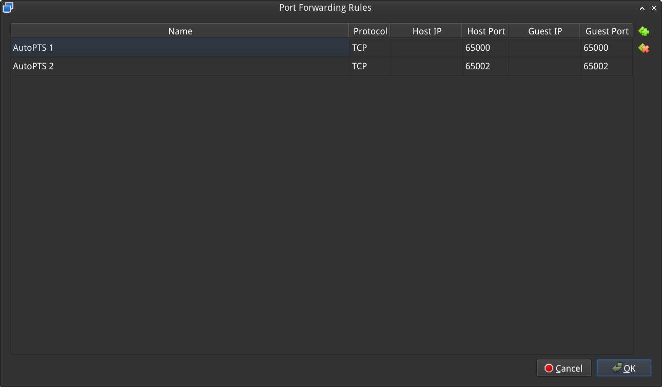 to connect to an AutoPTS Server in Windows running on ports 65000 and 65002.