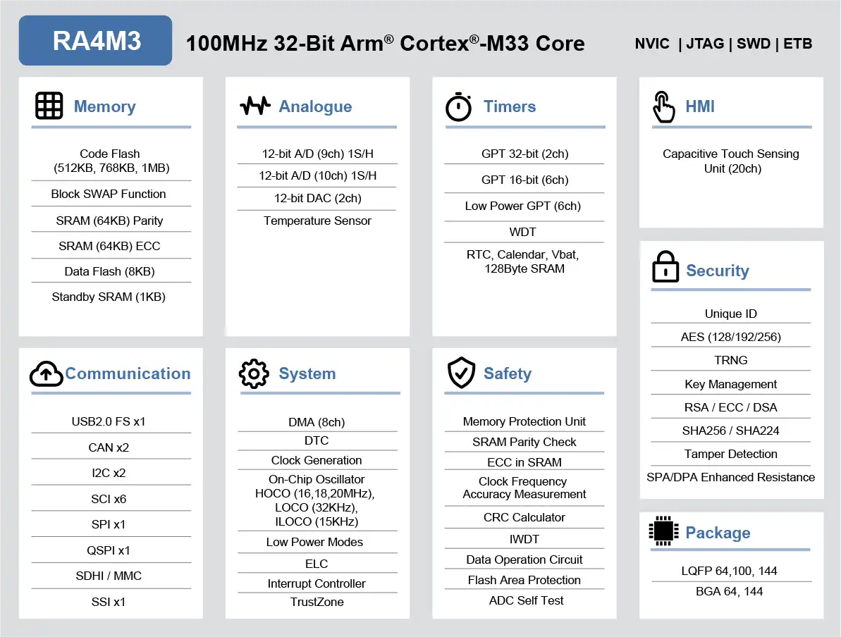 RA4M3 Block diagram (Credit: Renesas Electronics Corporation)