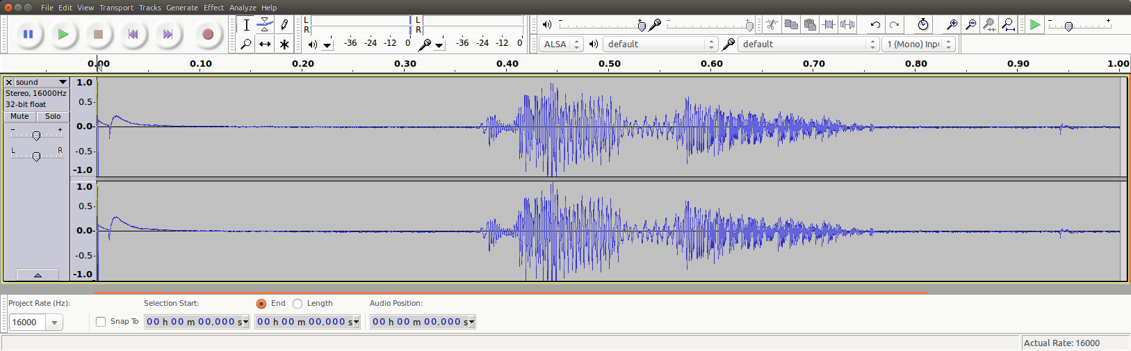 The /tmp/sound.raw file final size should result exactly of 32000 byte, but sometimes may happen that 1 or 2 spurious 0x00 bytes are put at the beginning. In this case the user may get rid of them using the following linux command (change skip value according to number of spurious bytes to be removed):