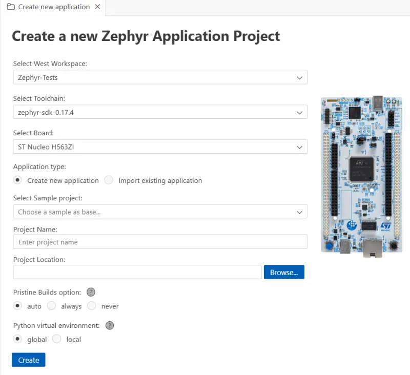 On Workbench for Zephyr, new projects are based on samples from Zephyr sources.